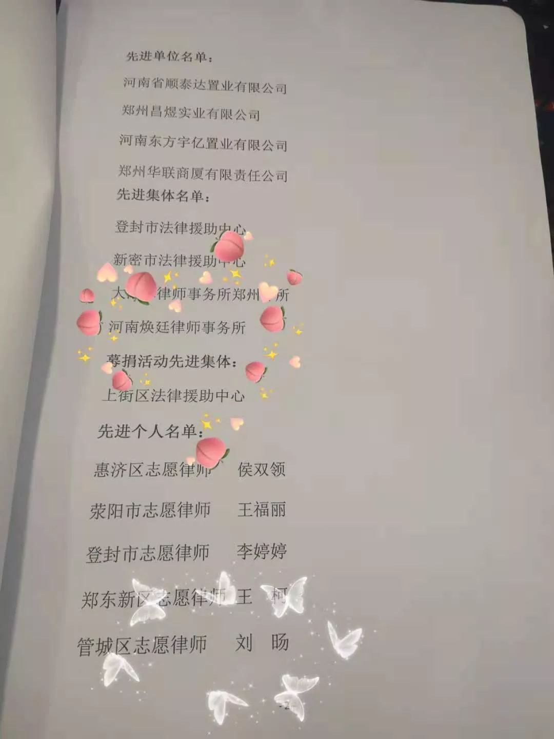 鄭州市法律援助工作者劉旸律師所獲榮譽證書