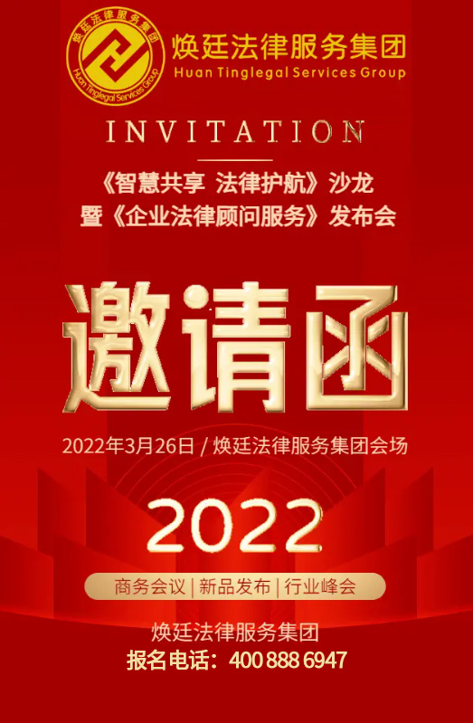 如何規避企業勞動用工風險歡迎參加煥廷律師事務所第三十一期《智慧共享 法律護航》企業家沙龍會,將于2022年3月26日下午2:30分如期舉行。