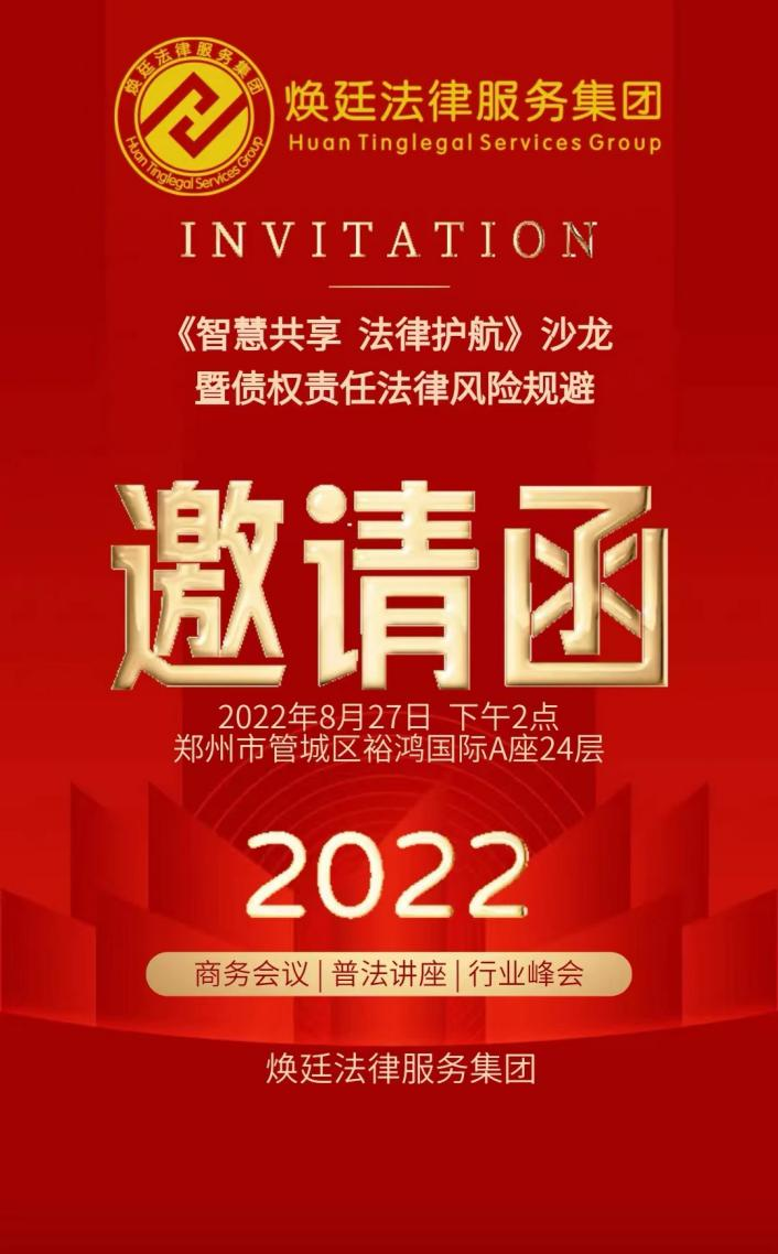 如何“防患于未然”,規避債權責任法律風險?歡迎參加煥廷律師事務所第三十六期《智慧共享 法律護航》企業家沙龍會。本次沙龍將于2022年8月27日下午如期舉行。